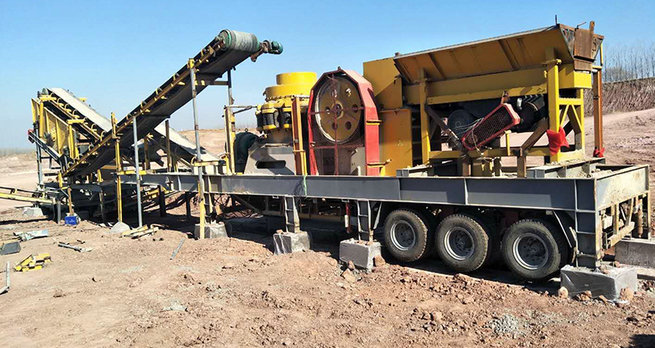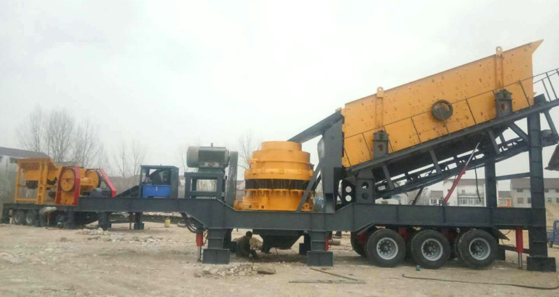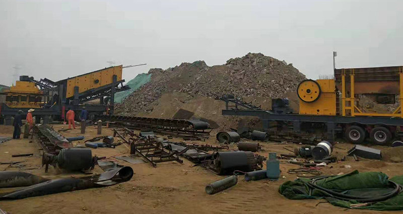 移動式破碎站主破碎設備為破碎機,物料經給料機均勻輸送到破碎機內,被破碎機初步破碎以后由圓振動篩構成閉路系統,實現物料的循環破碎,符合粒度要求的物料由輸送機輸出,從而達到生產目的。移動式破碎站還可以根據實際生產需要去除圓振動篩,而直接對物料進行初步破碎,然后配合其他破碎設備進行具體的操作,方便、靈活。